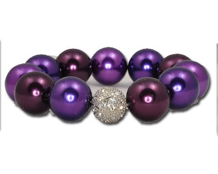 - Formal 16mm violet, orchid and eggplant colored pearls with 14mm silver ball covered in rhinestones