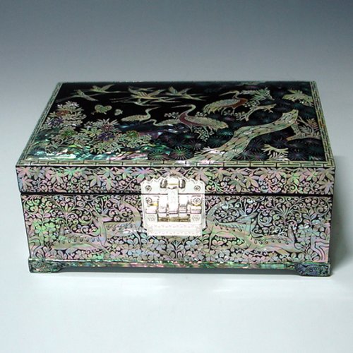 Mother of Pearl Crane and Pine Design Lacquered Wooden Asian Handcrafted Secret Lock Key Mirrored Jewelry Trinket Keepsake Treasure Box Ring Case Chest Organizer Review