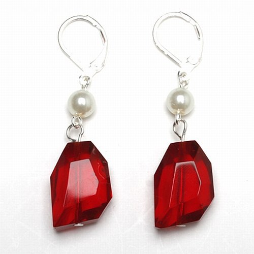 Here is a flashy pair of red stone and white pearl 1.5" dangle earrings. These dangles have shiny natural-like red stones accented with two white freshwater pearls! Perfect for adding color to your look! A great item for gift giving or for yourself. Earrings come to you in a foil gift box though may be a different box color than the one shown.