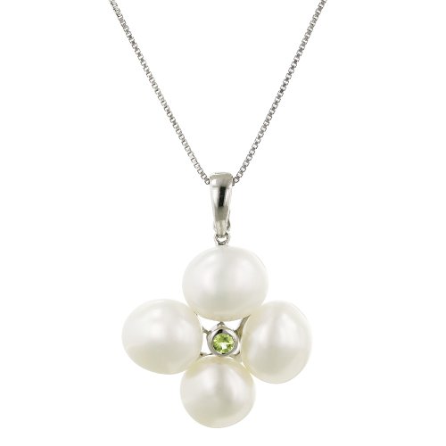 Sterling Silver White Free Form Freshwater Cultured Pearl Pendant with Peridot Center (10-12mm), 18" Review