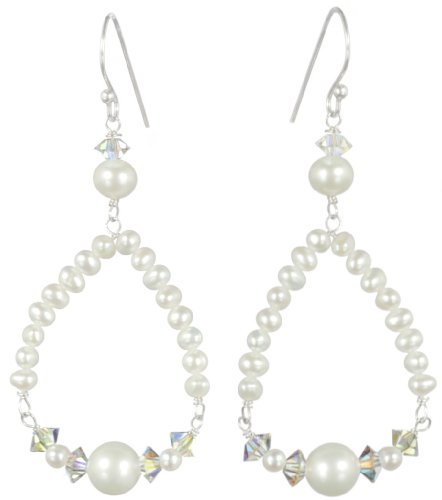 Sterling Silver White Freshwater Cultured Pearl with Crystallized Swarovski Elements Triangle Shape Earrings Review