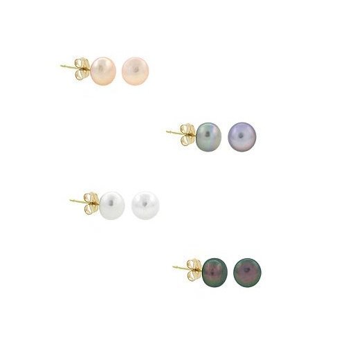 14K Gold Genuine Freshwater Cultured Pink, Gray Black & White Button Pearl 6-6.5mm Stud Earring Set Feature
