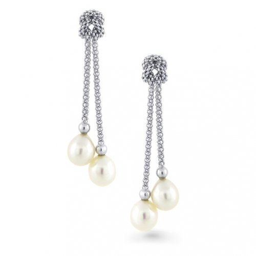 Bling Jewelry Sterling Silver Love Knot Twin Pearl Drop Earrings Feature