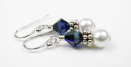 September Dark Sapphire 6mm Freshwater Pearl Swarovski Crystal Drop Earrings - 1 Inch, Sterling Silver Review