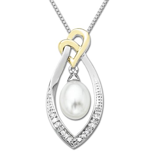 Sterling Silver and 14k Yellow Gold Pearl with Diamond Pendant, 18" Review