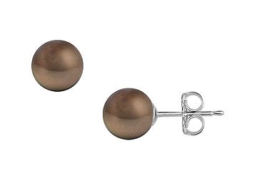 A pair of round freshwater cultured pearl stud earrings with a size of 10 mm is made in 14K white gold. These pearl studs are available in either screw-back or push-back. Pearl Shape: Round. Pearl Size: 10. Pearl Color: Chocolate. Pearl Luster: High