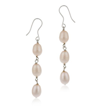 These graceful earrings feature a dangling row of three 8 x 10mm baroque freshwater cultured pink pearls. The sterling silver earrings dangle from a fishhook back.