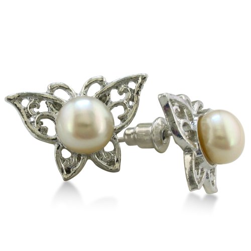 These unique butterfly shaped pearl earrings are unlike anything you've seen before! With two 8mm freshwater pearls, these earrings are perfect for the animal lover in all of us. All pearls sold by SuperJeweler are freshwater cultured and produced in China.