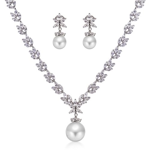 Bling Jewelry Bridal South Sea Shell Pearl CZ Marquise Leaf Necklace and Earrings Set Review