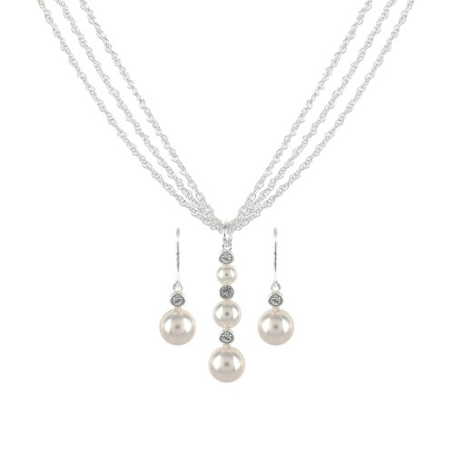 Cream Simulated Pearl and Crystal Earrings and Necklace Set (6-12mm), 18" Review