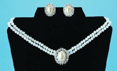 - Necklace, Clip-On Earrings. Cream, Silver.