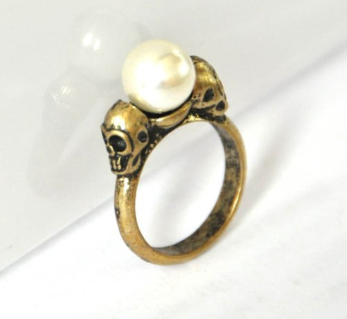 Art Deco antique gold tone skulls ring with faux pearl jewelry bead Review